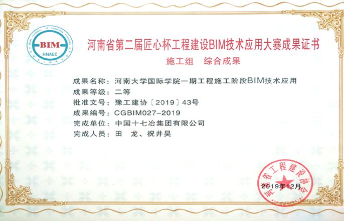 1月4日,中冶置業(yè)(安徽)公司河南大學(xué)項(xiàng)目形成的《河南大學(xué)國際學(xué)院一期工程施工階段BIM技術(shù)應(yīng)用》成果,獲評(píng)河南“匠心杯”工程建設(shè)BIM技術(shù)應(yīng)用大賽二等獎(jiǎng)。