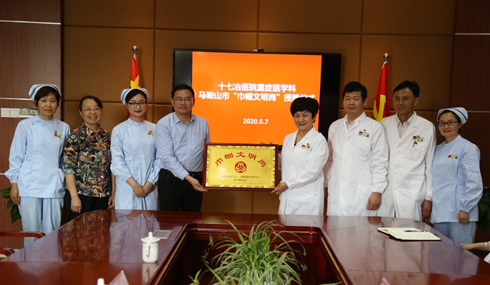 5月7日下午,馬鞍山市總工會、馬鞍山市婦聯(lián)來十七冶醫(yī)院為重癥醫(yī)學(xué)科馬鞍山市“巾幗文明崗”授牌。