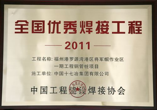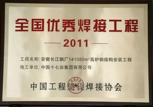 中國(guó)十七冶集團(tuán)施工的內(nèi)蒙古星光煤炭集團(tuán)特鋼工程、福州港羅源灣港區(qū)將軍帽作業(yè)區(qū)一期工程鋼管樁項(xiàng)目和安徽長(zhǎng)江鋼廠1#1080m3高爐鋼結(jié)構(gòu)安裝工程等三項(xiàng)工程榮獲2011年度“全國(guó)優(yōu)秀焊接工程”獎(jiǎng)。