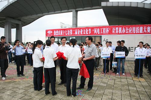 儀式上,公司總工程師尹萬云、風(fēng)電公司經(jīng)理高勝勇和市總工會經(jīng)濟技術(shù)部主任李開甫為比賽舉行了剪彩。