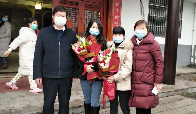 醫(yī)院紀(jì)委書記、副院長高榮東趕赴隔離點迎接,代表醫(yī)院對她們表示了慰問,祝賀她們平安歸來。在隔離病房,她們是沖在一線的戰(zhàn)士,是病人的依賴。1月31日,她們第一次穿上厚重的防護服,開始了在四院隔離病房的工作。她們像一只企鵝,“笨拙”的進行著每項護理,為患者輸液,霧化,發(fā)藥,生活方面的幫助,病區(qū)的消毒隔離工作……作為共同進退的戰(zhàn)友,上班前她們都會相互打氣,勉勵彼此。有苦亦有甜,暖心的是病人為她們豎起的大拇指,感動的是病人為她們發(fā)來感謝和問候的短信。正是相互之間的守望相助,面對困難的團結(jié)一心,點亮了抗擊疫情的絲絲燭火,傳遞出血濃于水的同胞之情,匯集成一股磅礴的力量,讓這個冬天變得格外溫暖。