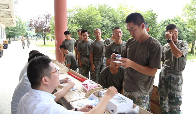由于連日來的抗洪搶險,不少官兵因長時間被雨水浸泡,在悶熱潮濕的環(huán)境中高強度奮戰(zhàn),出現了不同程度的皮膚損傷、濕疹等癥狀。十七冶醫(yī)院皮膚科、口腔科、眼科、骨科、內科等科室青年骨干主動上前,為官兵們進行血壓血糖測定、健康咨詢和簡單疾病診治服務,提出健康指導建議,籍此表達對人民子弟兵的崇高敬意,并向他們致以節(jié)日問候和誠摯謝意,為他們長期以來堅守一線、不怕苦、不怕累,英勇抗擊洪災的精神點贊喝彩。駐地官兵非常歡迎醫(yī)療組的到來,感謝十七冶醫(yī)院給予的溫暖與關懷,并表示醫(yī)務人員也是新時代最可愛的人,在抗擊疫情和抗洪救災中,軍民攜手同心、眾志成城,一定能夠奪取抗洪搶險和疫情防控的全面勝利。
