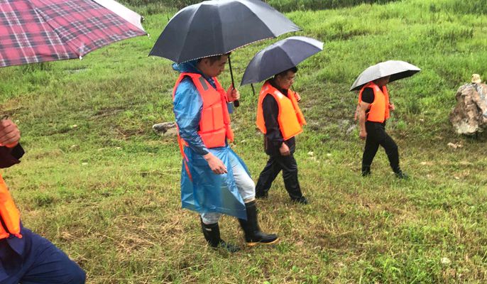 7月27日,在嚴(yán)密的巡查過(guò)程中,隊(duì)員們于巡查圩段處發(fā)現(xiàn)兩處滲漏點(diǎn),“大家快過(guò)來(lái)看,這根管道下面是不是一直在滲水?”隊(duì)員們看到背水坡一處管道下一直有“水滴答滴答”滲漏而出。安全環(huán)保部部長(zhǎng)吳昌華在確認(rèn)現(xiàn)場(chǎng)情況后立即向有關(guān)負(fù)責(zé)人反映此情況,并立即采取措施進(jìn)行了封堵,將可能發(fā)生的險(xiǎn)情消弭于萌生階段。直到滲漏點(diǎn)被完全封堵,大家一顆顆懸著的心才逐漸放了下來(lái),而此時(shí)大家都覺得連日的艱苦巡查十分值得,堅(jiān)持下去的信念也因切實(shí)能為當(dāng)?shù)鼐用衽懦U(xiǎn)情而更加堅(jiān)定。