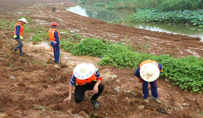 為守護堤岸安全,更加及時排查滲漏點及滑坡等險情隱患,到達防汛點堤岸后,黨員突擊隊與村里的防汛志愿者按6人一隊組成巡查小組,按照既定的責(zé)任分工,每間隔100米劃分責(zé)任區(qū),確保對所有圩口進行不間斷地毯式巡邏查險,不放過一處細(xì)微滲漏處。堤岸旁,所有人員一字排開,細(xì)細(xì)觀察疏松的泥土地,不時俯下身子翻看邊緣草叢是否有渾濁水流淌出,始終堅守責(zé)任堤段。