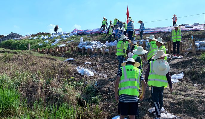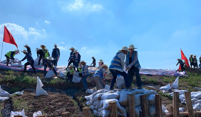 三伏天火辣辣的太陽蒸騰著大堤,熱浪滾滾,即使不走動,在堤上站上幾分鐘,也會汗流浹背。搶險突擊隊員們在38℃高溫悶熱的環(huán)境下,揮汗如雨,拿起編織袋、鐵秋,裝砂石的裝砂石,運沙袋的運沙袋,齊心協(xié)力,眾志成城抗擊洪水,和水位比高度,與洪峰比速度,不斷加高加固圩堤?,F(xiàn)場累計裝運8200袋石子,堤壩加高30公分,加長300米,有效抵御了高水位的浸泡強壓,防止堤壩塌方,得到政府部門的一致好評。