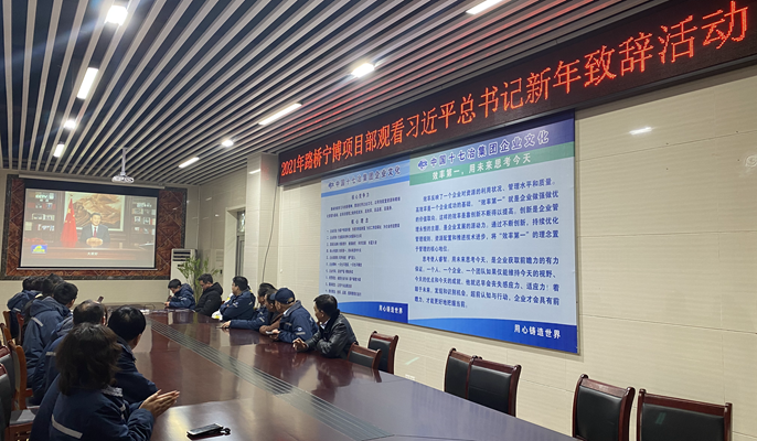 博望區(qū)“寧博一體化”項目管理部組織全體職工集中觀看了習(xí)近平主席發(fā)表2021年新年賀詞,回顧“用眾志成城、堅忍不拔書寫的抗疫史詩”,展望“全面建設(shè)社會主義現(xiàn)代化國家新征程”。習(xí)近平主席的新年賀詞描繪了這一年中國人民波瀾壯闊的奮斗畫卷,溫暖人心、令人振奮。大家表示在新的一年,要繼續(xù)奮斗,勇往直前,創(chuàng)造更加燦爛的輝煌,以優(yōu)異成績慶祝中國共產(chǎn)黨成立100周年。隨后項目部還舉行了抽獎活動,在歡聲笑語中共同迎接2021年的到來。