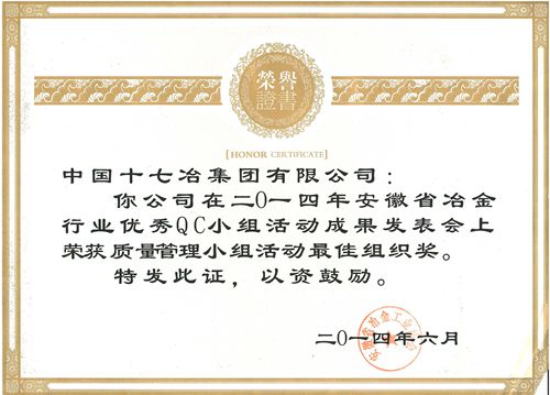 近日,從安徽省冶金工業(yè)協(xié)會獲悉,中國十七冶集團榮獲質(zhì)量管理小組活動最佳組織獎和4項2014年安徽省冶金行業(yè)優(yōu)秀QC小組活動成果二等獎。