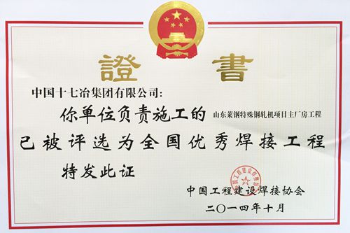 日前,在北京召開的“2014年度全國優(yōu)秀焊接工程頒獎暨經(jīng)驗交流會”上,中國十七冶集團(tuán)冶金工程技術(shù)公司張家港聯(lián)峰鋼鐵3#1080m³高爐、山東萊鋼特殊鋼軋機(jī)項目主廠房等兩項工程被授予“全國優(yōu)秀焊接工程獎”。
